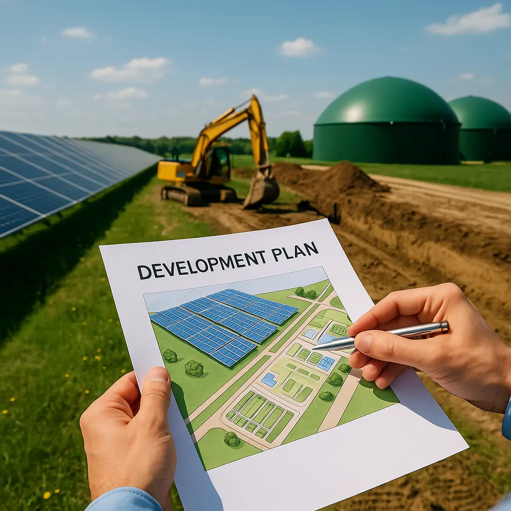 Development projektów w REGENEO obejmuje pełną ścieżkę inwestycyjną – analizujemy teren i dostępność surowców, przygotowujemy koncepcje technologiczne i finansowe, a następnie wspieramy w pozyskaniu decyzji administracyjnych oraz warunków przyłączenia. Naszym celem jest zminimalizowanie ryzyka inwestycji i sprawne przeprowadzenie projektu przez wszystkie etapy formalne.
